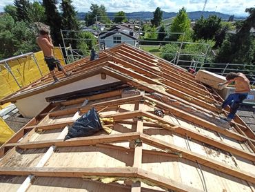 Die Dachsanierung wurde nach strengen GEAK Vorgaben ausgeführt. Die Isolation wurde zwischensparren verlegt mit einer Stärke von 180mm. Auf diese wurde erneut mit 80mm Gutex überdämmt für einen ausgezeichneten Hitzeschutz.