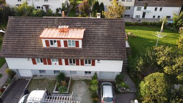 Bei einer routinemässigen Dachkontrolle wurde das alte, verrostete Blechdach genauer inspiziert. Die Lebensdauer von dem Blech war abgelaufen und die Firma Muhmenthaler durfte die Lukarnen sanieren. Ausserdem wurde die Lukarne gleich ausgedämmt und mit einem Gutex Hitzeschutz Unterdach versehen. Die Lukarnen strahlen nun wieder in neuem Glanz weitere Jahrzehnte...